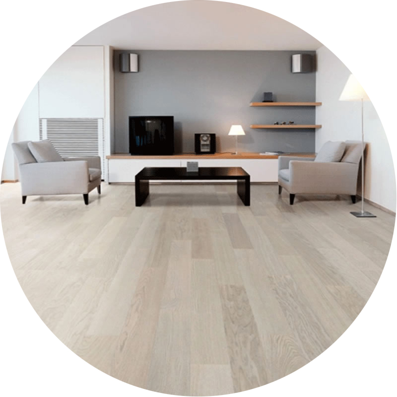 The floors in the living room and bedrooms are semi-solid, natural oiled oak parquet.