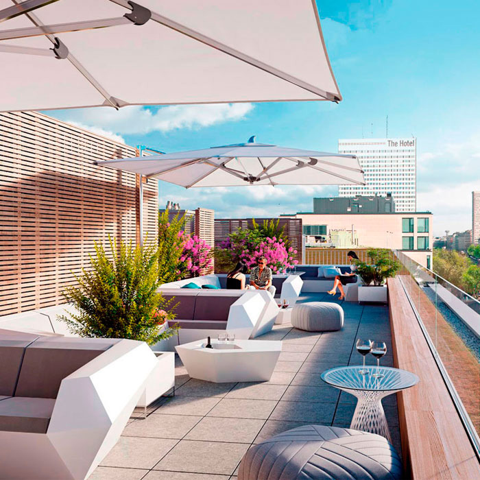 Solarium – a roof top terrace of 300 m2 on the Boulevard de Waterloo building is available to all the residents of that building. The area will be decorated and divided into ‘family’ zones offering a certain degree of privacy and intimacy.